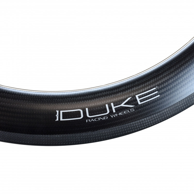 The DUKE carbon Rim (3k) twill 2x2, draw, developed and tested in Vendée (France), and made in Europe. The DUKE carbon rim baccara 65T have a 65 mm profile height and an important width of 26 mm :they are modern widths. This allow to reduce aerodynamic drag and increase speed.