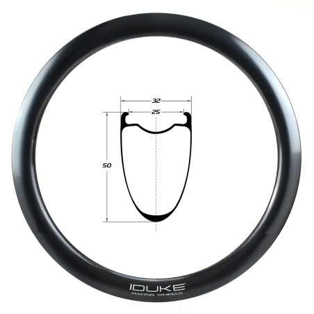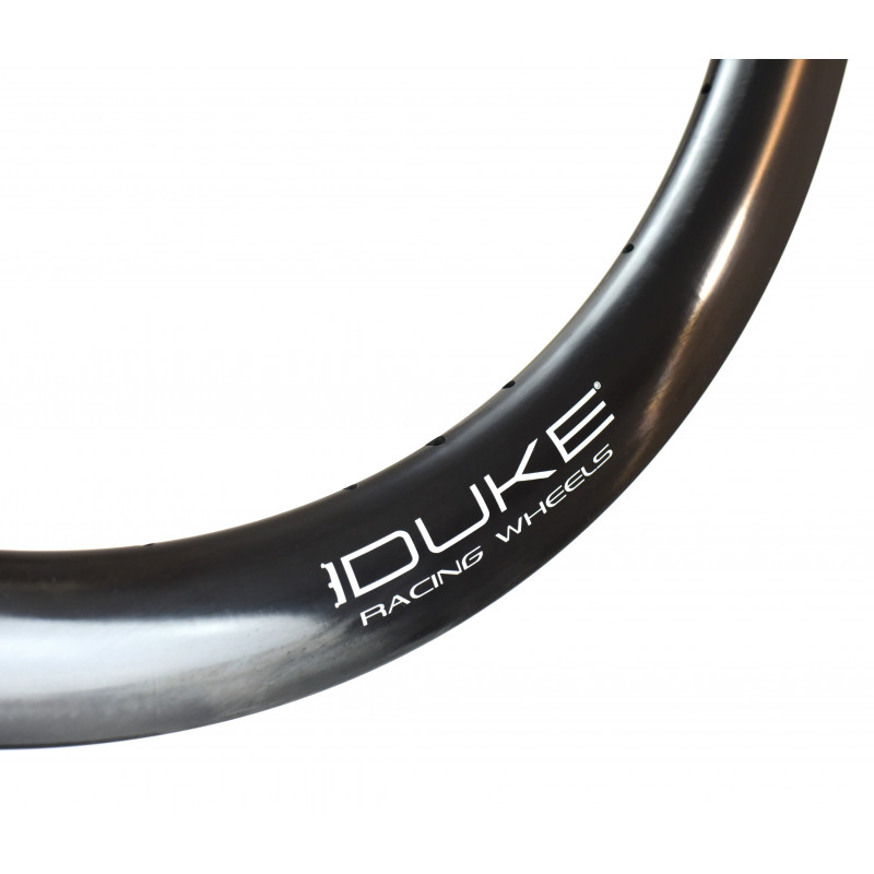The DUKE World Runner Carbon has a profile height of 50mm, symmetrical. Width between 25mm large brackets: This gives more volume to the tires and thus improves efficiency, Comfort and grip in turns. A wide rim also means being able to use the finer and lighter tires while maintaining comfort, The softness and grip provided by a larger volume of air.