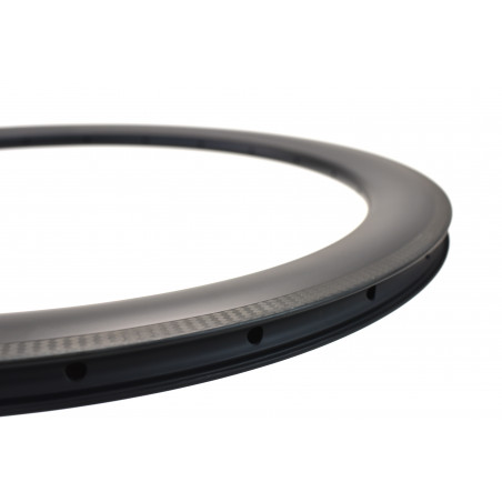 Clincher Carbon wheel (Tubeless ready) . Its rigidity and lightness for the rather hilly profiles. The behavior is very nervous. For competitors or cyclists looking for high performance. The JPRACING1 RB60c carbon rim has a large width of 18mm inner, 25mm between pads and 28mm in the central part: these are the modern widths. This reduces aerodynamic drag and therefore increases its speed. The wheels are also less sensitive to side wind and the steering more precise, the cyclist feels more confident.