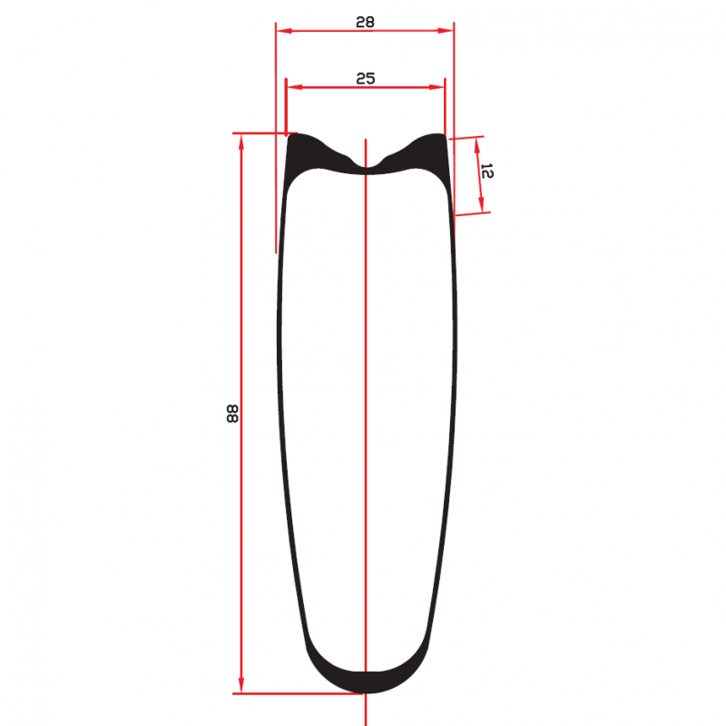 Tubular Carbon wheel. Its rigidity and lightness for the rather hilly profiles. The behavior is very nervous. For competitors or cyclists looking for high performance. The JPRACING1 RB88T carbon rim has a large width of 25mm between pads and 28mm in the central part: these are the modern widths. This reduces aerodynamic drag and therefore increases its speed. The wheels are also less sensitive to side wind and the steering more precise, the cyclist feels more confident. Compatible rim for tubular (23 or 25mm wide): the tubular of this size bring efficiency, comfort and grip.