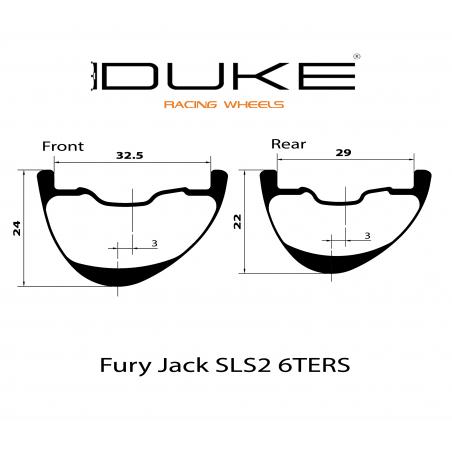 The Fury Jack 6TERS are carbon rims suitable for Enduro use. The front/rear widths are differentiated: 32.5mm/29mm. The rim weight is only 460g (FR) and 525g (RR). The rim is also compatible with E-bike.
