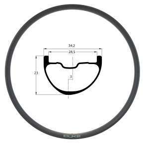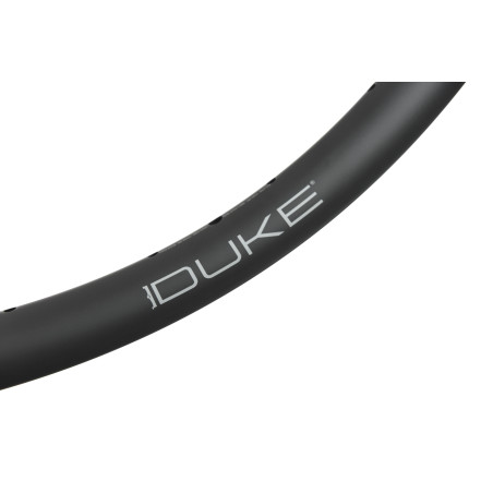 Comfort and grip thanks to a larger volume of air. It offers unrivaled lateral stiffness / weight ratio in its class and provides unusual sensations. Designed, developed and tested in France, The DUKE Crazy Jack in carbon has an ASYMMETRICAL profile (offset of 3 mm) which allows to increase the lateral stiffness of the wheel without gaining weight. The internal width between the hooks / sides is 28.5 mm. This gives more volume to the tires and improves efficiency, comfort and grip in turns.A wide rim also means that you can use finer, lighter tires while maintaining the comfort, softness and grip provided by a larger volume of air. Hookless design: the robustness of the rim is superior to that of a carbon rim with hooks. This technology has been used successfully on our rims since 2011. The height of the rim edge for 2015 is reduced by 1mm to further limit any risk of contact with the ground. Lateral stiffness improved by 40% compared to the previous version. Impact-resistant even on the most brittle ground: improved impact energy absorption of more than 50% compared to the previous model. Anti-burp system: the heel of the tire is held in position whatever its pressure, no risk of "unseating". Tubeless or inner tube.