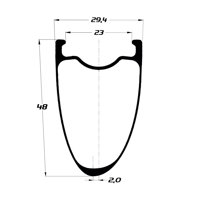 So more stiffness and more durability. The wider 23mm hook width gives more volume to the tires and improves comfort and grip without losing performance. Recommended tire widths are 28mm to 53mm, tubeless or tubetype.