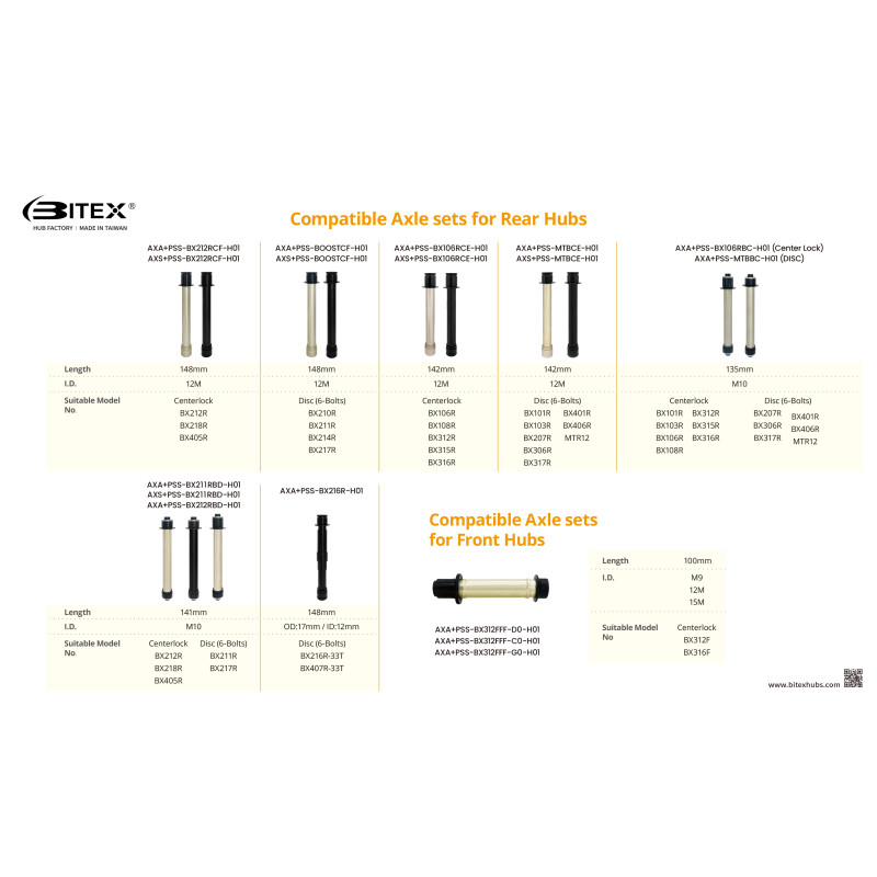 Steel axle for BX106R, BX108R and BX312R hubs, supplied with caps.