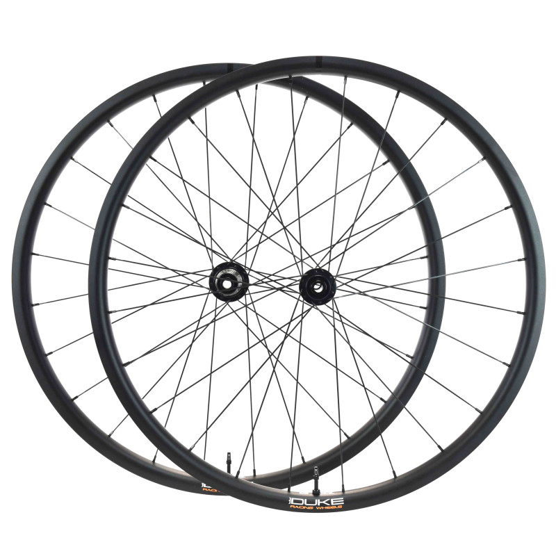 Available for disc brakes. The rim holes are off-centered (2mm offset), which allows to close more the spokes umbrella. This makes the rim more stable and increases the lateral stiffness of the wheel. The spoke tensions between the two layers are more balanced, which guarantees a better durability of the wheel. So more stiffness and more durability. The wider 21mm hook width gives more volume to the tires and improves comfort and grip without losing performance. DUKE owns its manufacturing tools. Duke French brand