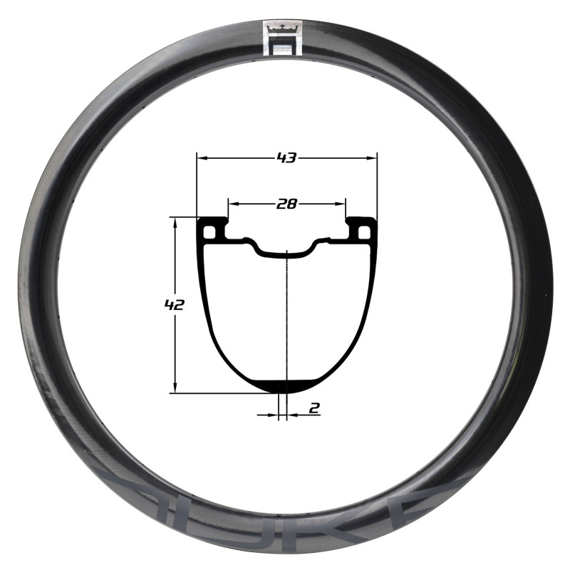 - Rim height: 42 mm, offering an aerodynamic profile while ensuring sufficient inertia to maintain the speed gained on flat terrain.