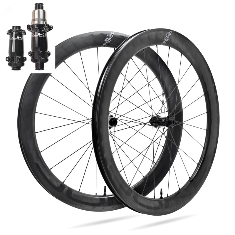 * Weight +/- 30 g for a pair of wheels drilled 20h front / 24h rear, built with DUKE MadMax3-T hubs and Sapim CX-Carbon spokes.