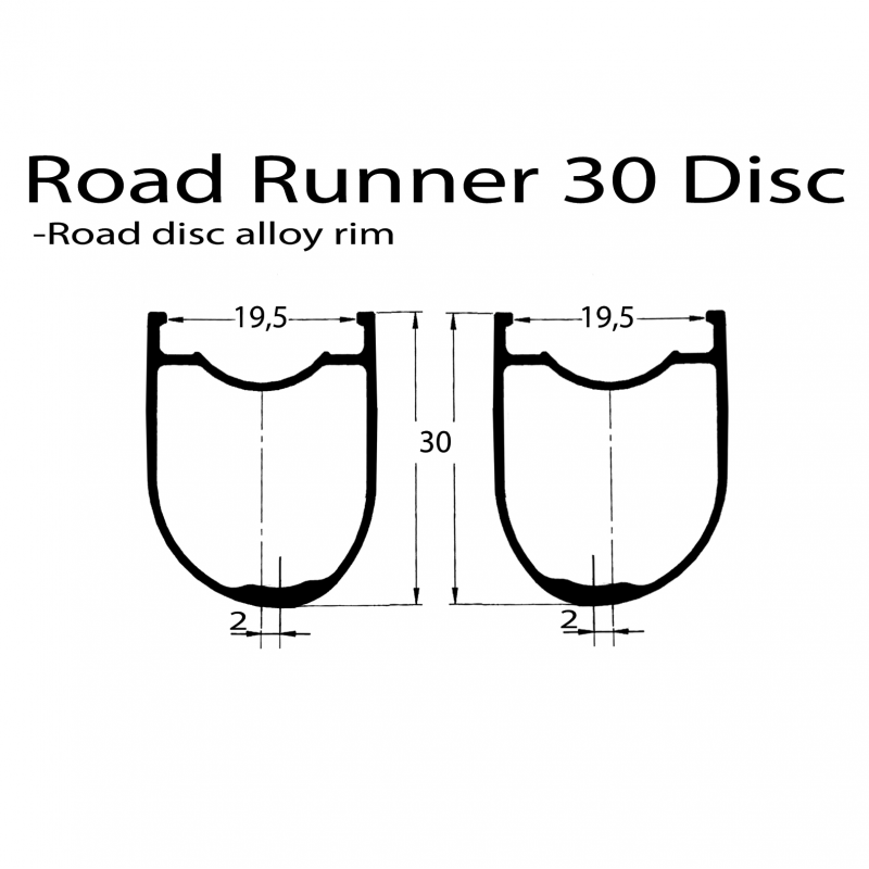 La jante DUKE Road runner 30 disc est dessinée, testée en France, DUKE est le propriétaire exclusif des outils de fabrication. La jante DUKE Road Runner possède une hauteur profil de 30 mm. Profil symétrique à l’avant et ASYMÉTRIQUE à l’arrière : avec l’augmentation du nombre de vitesses, la flasque côté cassette du moyeu se voit de plus en plus « poussée » vers l’intérieur de la roue. Le parapluie des rayons s’ouvre ainsi davantage et ceci a pour conséquence la réduction de la rigidité latérale de la roue : celle-ci est floue dans les relances, prend du voile facilement… Pour réduire ce phénomène nous avons dessiné une jante arrière asymétrique qui va donner un parapluie bien supérieur aux jantes symétriques (offset de 2 mm) et va permettre de rééquilibrer les tensions des deux nappes : plus de rigidité et plus de durabilité. Largeur entre crochets importante de 19,5 mm : Ceci donne davantage de volume aux pneus et améliore ainsi rendement, confort et adhérence dans les virages. Une jante large signifie également pouvoir utiliser des pneus plus fins et plus légers en conservant le confort, le moelleux et le grip procurés par un volume d’air plus important.