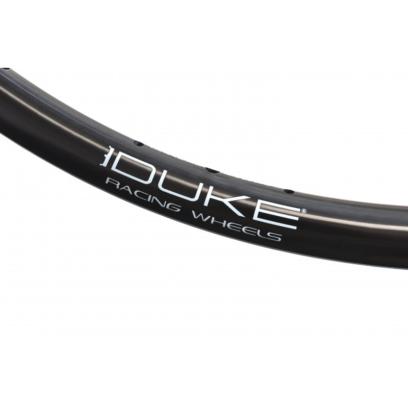 La Lucky Jack est le fleuron de notre gamme XC. C’est l’arme ultime pour les courses exigeantes. Légère, rigide et résistante elle saura faire face à toutes les situations. Elle possède un rapport rigidité latérale/poids imbattable et possède un niveau de réactivité inégalé. Pour les sportifs qui recherchent le must. La jante DUKE Lucky Jack en carbone possède un profil ASYMÉTRIQUE (aussi robuste qu'un profil symétrique) offset de 2,8 mm, ce qui permet d'augmenter la rigidité latérale de la roue sans prendre de poids. La largeur intérieure entre crochets/parois importante est de 30mm. Ceci donne davantage de volume aux pneus et améliore ainsi rendement, confort et adhérence dans les virages. Une jante large signifie également pouvoir utiliser des pneus plus fins et plus légers en conservant le confort, le moelleux et le grip procurés par un volume d’air plus important. Parois de jante sans crochet (hookless design) : la robustesse de la jante est supérieure comparée à celle d’une jante carbone avec crochets. Cette technologie est utilisée avec succès sur nos jantes depuis 2011. La hauteur du bord de jante depuis 2015 est réduite de 1mm pour limiter encore davantage tout risque de contact avec le sol. Résistante aux impacts même sur les terrains les plus cassants. Anti-burp system: le talon du pneu est maintenu en position quelle que soit sa pression, pas de risque de déjantage.