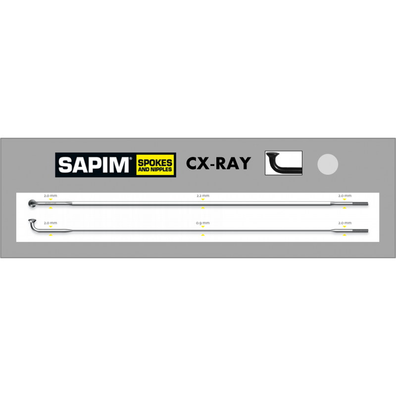 Le modèle CX-Ray est le porte-drapeau de Sapim : en dépit de sa faible masse, son élasticité est près de 50 % meilleure qu'un rayon classique avec une durée de vie 3 fois supérieure. Ce modèle convient à toutes les pratiques du cyclisme puisque, de la recherche ultime de légèreté pour les ascensions avec votre vélo de route à la résistance absolue pour les pierriers en descente, le CX-Ray vous permet d'alléger vos roues tout en contribuant à rendre votre monture encore plus fiable.