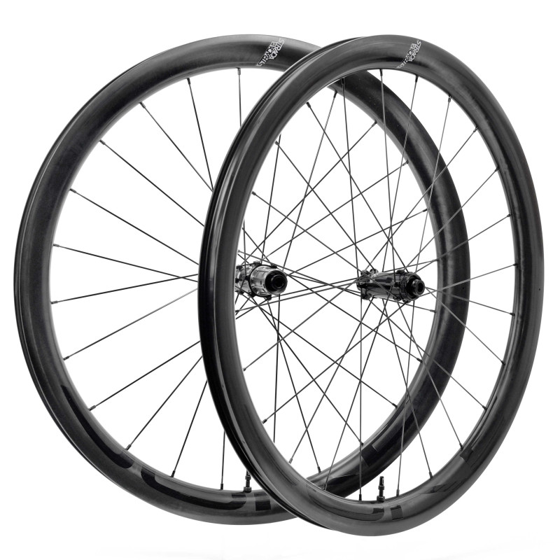 Dès 1090 g* de polyvalence pure. Strada 42 est notre roue carbone route Élite pour les parcours vallonnés, offrant un équilibre parfait entre vivacité, confort et début d’aérodynamisme.