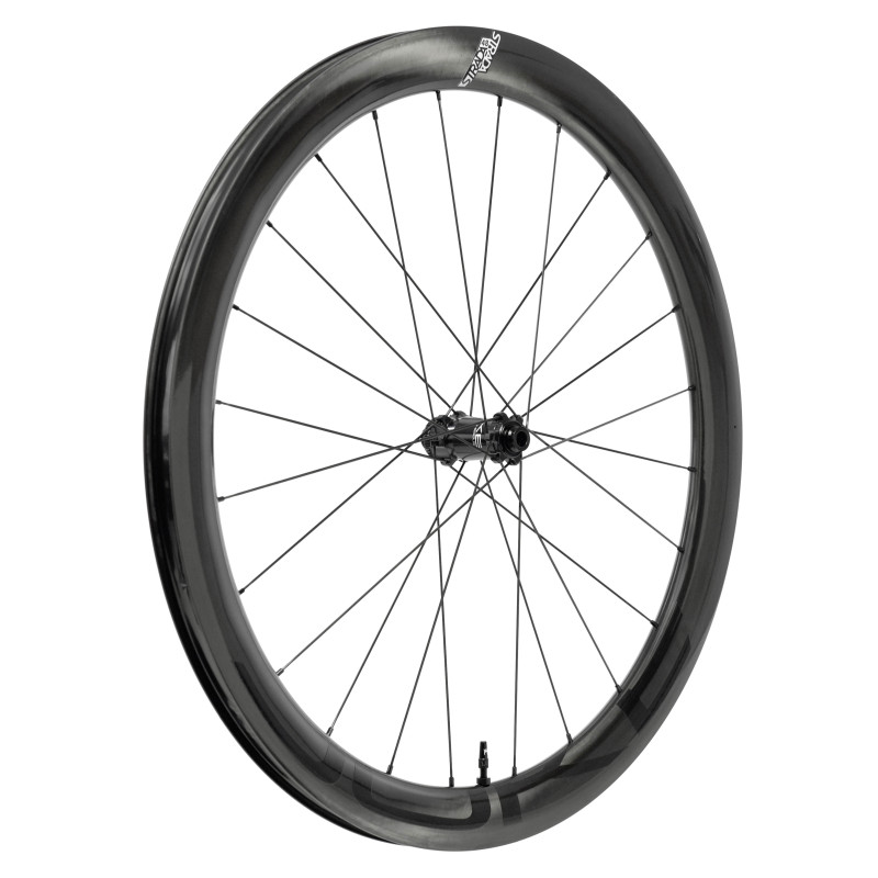 Dès 1130 g* dédiés à la performance. Strada 48 est notre roue carbone route Élite orientée vitesse, pensée pour rouler vite et attaquer dès que la route s’y prête.