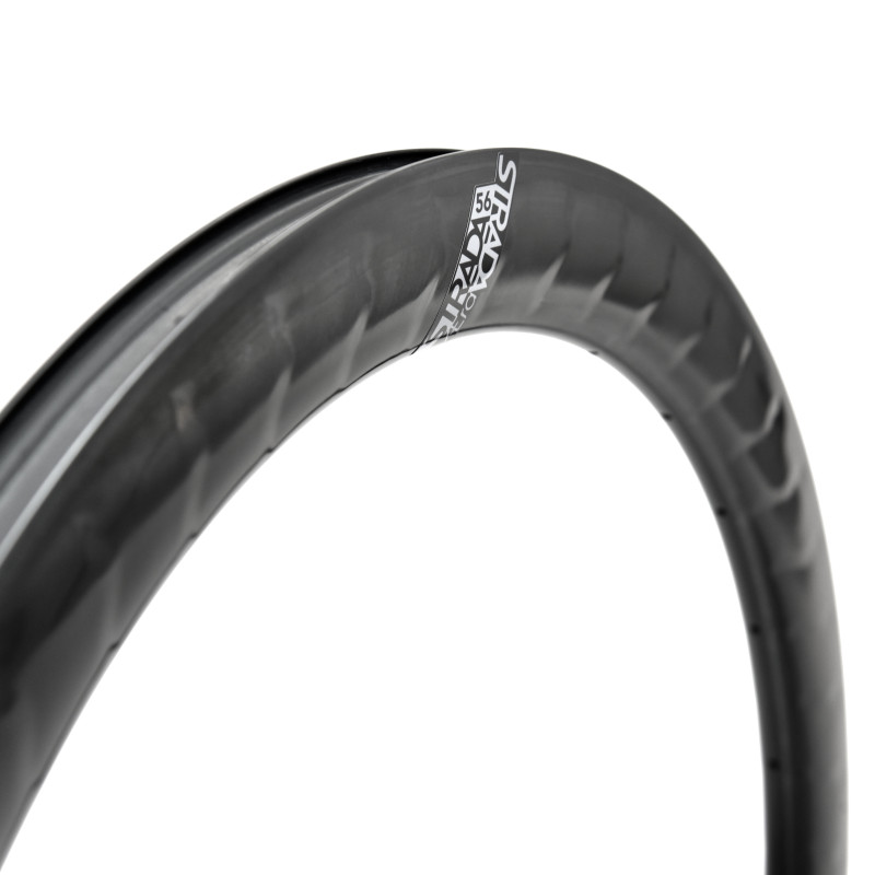 340 g d’aéro optimisé. Strada Æra 56 est notre jante carbone route Élite aéro polyvalente, conçue pour rouler vite sur tous les terrains, de la plaine exposée au vent aux parcours vallonnés.