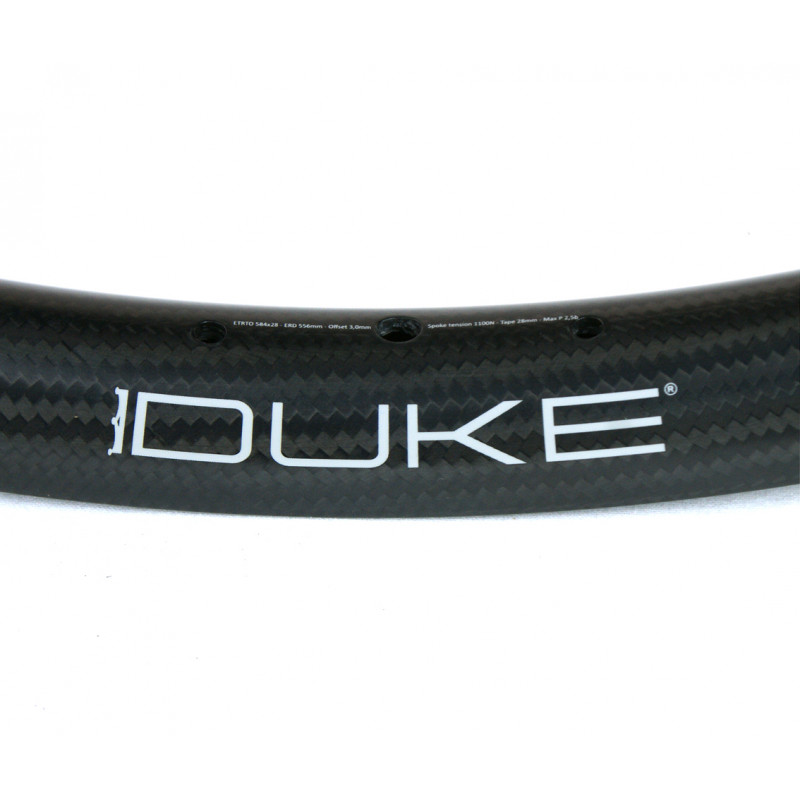 Paire de roues en carbone destinée à un usage All Mountain et Enduro. Sa largeur importante optimise le comportement du pneumatique et favorise ainsi le rendement, le confort et l'adhérence grâce à un volume d'air contenu plus important. Elle offre un rapport rigidité latérale /poids inégalé dans leur catégorie et procure des sensations hors norme. Dessinée, développée et testée en France, la DUKE Crazy Jack en carbone possède un profil ASYMÉTRIQUE (offset de 3 mm) qui permet d'augmenter la rigidité latérale de la roue sans prendre de poids. La largeur intérieure entre crochets/parois importante est de 28,5 mm. Ceci donne davantage de volume aux pneus et améliore ainsi rendement, confort et adhérence dans les virages. Une jante large signifie également pouvoir utiliser des pneus plus fins et plus légers en conservant le confort, le moelleux et le grip procurés par un volume d’air plus important.