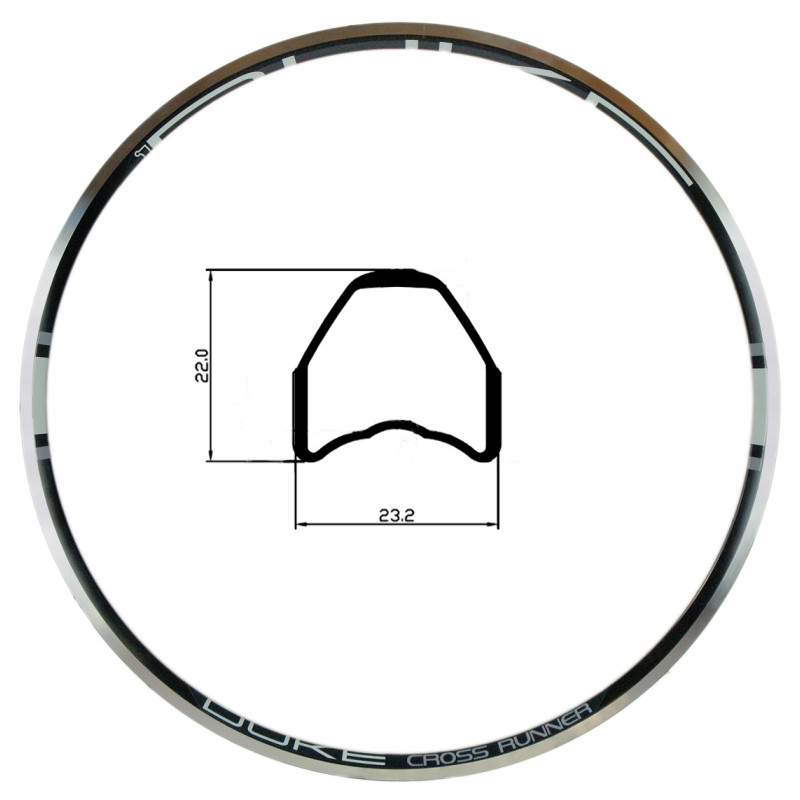 Les roues DUKE sont dessinées, développées, testées et fabriquées en Europe. La DUKE Cross Runner est une jante en aluminium pour boyaux. Avec une hauteur profil de 22 mm et un profil symétrique, la jante DUKE Cross Runner est destinée à une utilisation cyclo-cross.