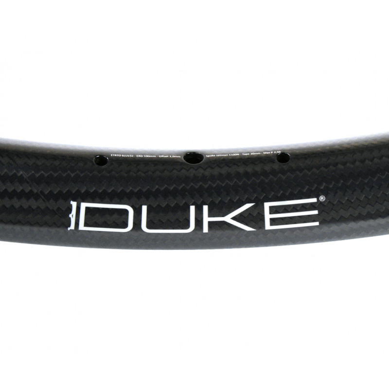 Dessinée, développée et testée en France, la DUKE Fury Jack en carbone possède un profil ASYMÉTRIQUE (offset de 3 mm) qui permet d'augmenter la rigidité latérale de la roue sans prendre de poids. La largeur intérieure entre crochets/parois importante est de 32 mm. Ceci donne davantage de volume aux pneus et améliore ainsi rendement, confort et adhérence dans les virages. Une jante large signifie également pouvoir utiliser des pneus plus fins et plus légers en conservant le confort, le moelleux et le grip procurés par un volume d’air plus important.